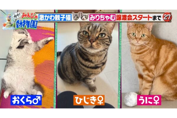 2025年11月放送の『嗚呼!!みんなの動物園』に木村カエラさんが出演しましたが、その時に猫を3匹飼っているという話をしていました。
