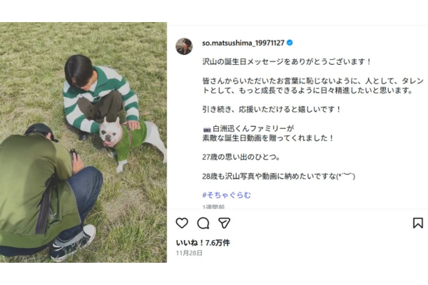 松島聡さんのInstagramでは、他にもいくつか松島聡さんとビスケットの写真が投稿されていて、多くのファンに癒やしを与えているようです。