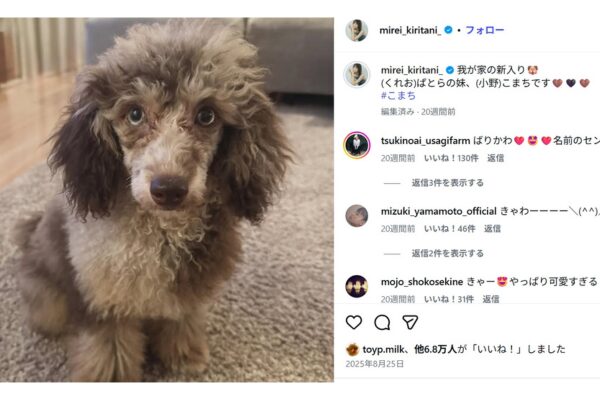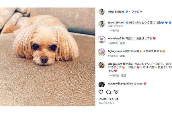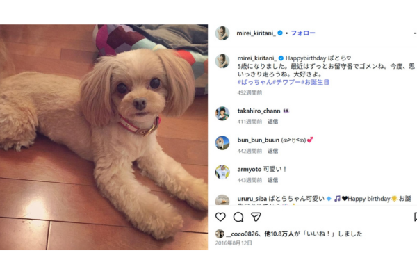 三浦翔平さん、桐谷美玲さんのInstagramでは、愛犬と一緒にくつろいでいる様子や、愛犬の可愛い姿が投稿されていて、「可愛い」「癒やされる」と多くのコメントが寄せられています。