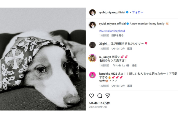 ルディは、宮世琉弥さんのInstagramに初めて登場したのが2025年10月で、生年月日は公表されていませんが、見た目も若く見えるので1歳にもなっていないかもしれません。