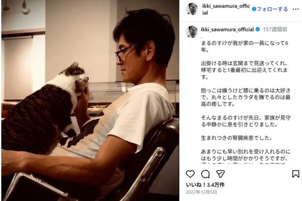ですが残念ながら、まるのすけは2022年12月に亡くなったことが、野村康太さんの父・沢村一樹さんのInstagramで報告されています。