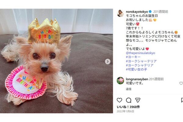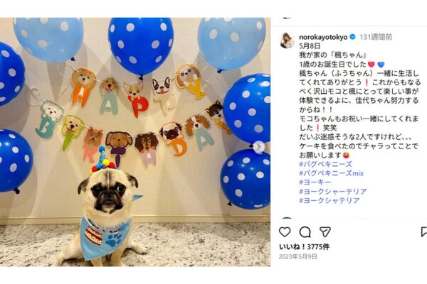 野呂佳代さんのInstagramには、モコちゃんの誕生日である1月5日の翌日に、「お祝いしました」とかわいい写真の投稿がありました。