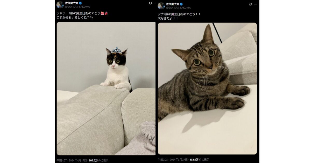 そんな佐久間大介さんは、猫好きとしても知られていて、2匹の猫と一緒に暮らしていることもファンの間では話題になっています。