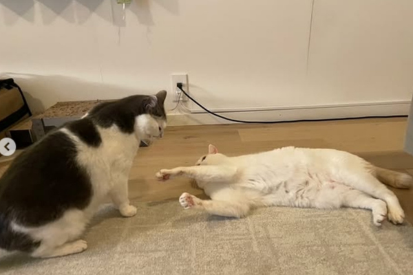 保護猫に興味があった池崎さんは、知り合いの紹介で保護猫施設『猫の森』を知り、2018年5月に風神と雷神と出会いました。