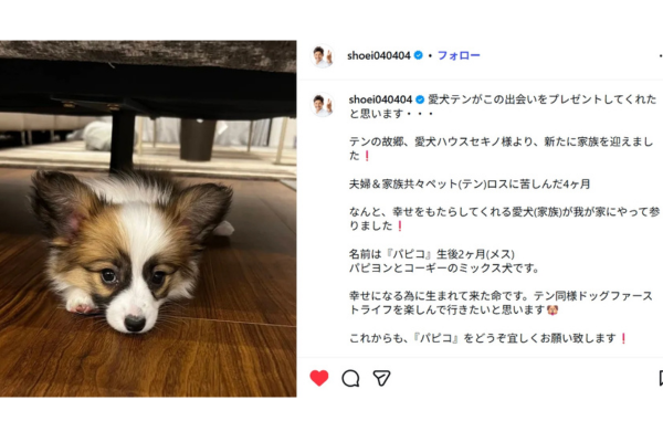 照英さんは、2026年2月23日にInstagramで新しい家族(愛犬)を迎えたことを報告しています。