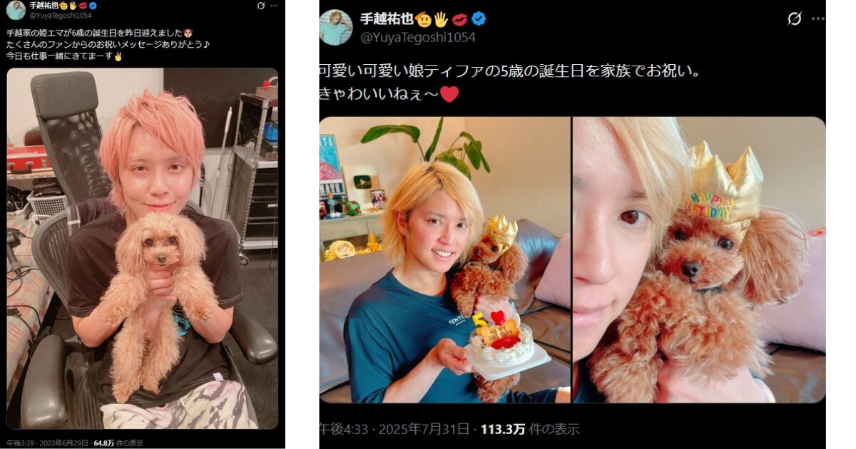 手越裕也さんは、愛犬の誕生日のお祝いをしている写真をSNSに投稿していて、ファンの皆さんからもお祝いのメッセージがたくさん寄せられています。