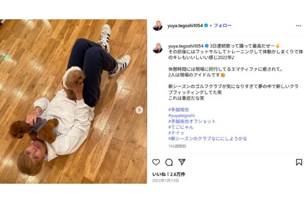 手越裕也さんは、愛犬家としても知られていて、時々SNSにも愛犬の写真を投稿しています。