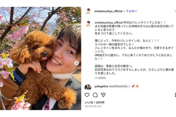 土屋神葉さんの愛犬エペルの1歳の誕生日は2021年2月14日でしたが、その翌日の土屋神葉さんのInstagramでは、家族と記念の散歩をしたとあり、土屋太鳳さんのInstagramにも写真が投稿されています。